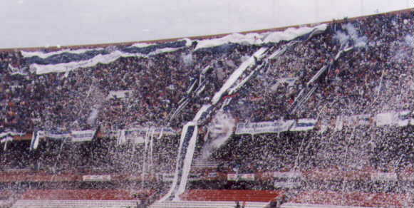 El negrito no lo piensa más; utiliza su singular potencia para subir a codazos a un para avalancha y empieza a cantar. En derredor se hace silencio, hasta que todos captan la idea. Minutos después, los otros tres costados del estadio aúllan la consigna, tosca y llana.