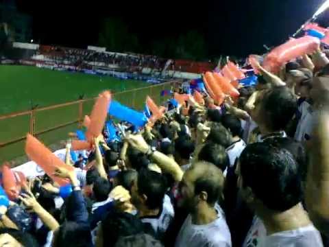 La tribuna roja y blanca, desde un costado, en minoría, lanza su artillería con pegadizo compás: